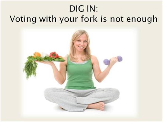 But ladies—and gentlemen—we are going to have to do more than vote with our forks or food dollars.