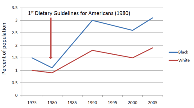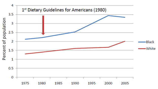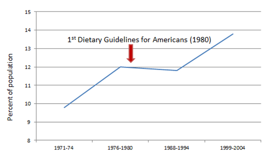 How about we just stop with the whole 30-year-long dietary experiment to prevent chronic disease by telling Americans what not to eat? I hate to be the one to point this out, but it doesn’t seem to be working out all that well. It’s hard to keep assuming that the AHA and the USDA/HHS mean well when, if you look at it for what it is, they are willing to continue to jeopardize the health of Americans just so they don’t have to admit that they might have been wrong about a few things. I suppose if a Consistent Public Health Message means anything, it means never having to say you’re sorry for 30 years-worth of lousy dietary advice.